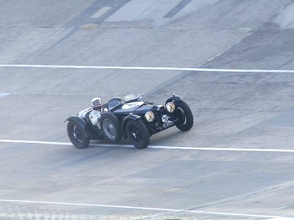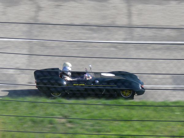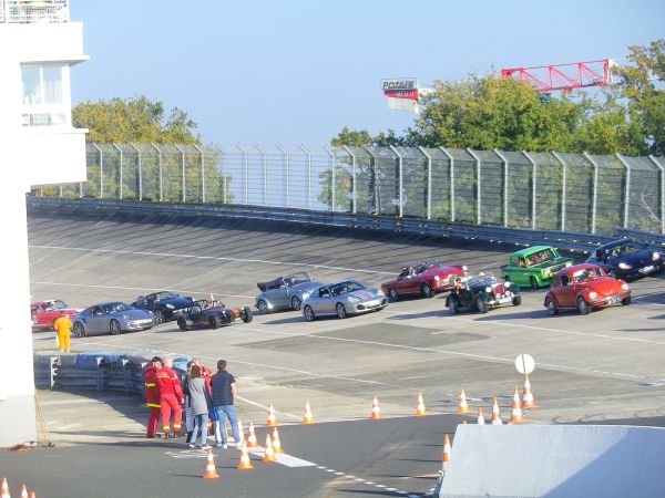 Tout le monde profite de l’anneau de vitesse avec plus ou moins de hardiesse: la VW n’hésite pas à tutoyer le rail supérieur sans crainte du déjaugeage…? Evidemment, la Lotus XI et la Riley sont plus adaptées à la piste.