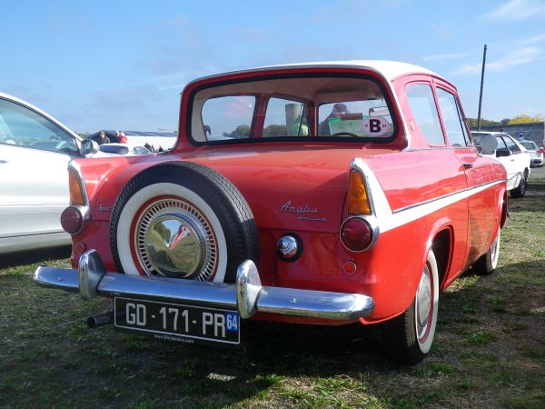 Comment résister à l’élégance de cette Ford Anglia 105E en version sportsman caractérisée par sa roue de secours apparente, produite de 1959 à 1967 à plus d’un million d’exemplaires. Le succès, quoi !!!