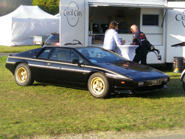 En plus des visiteurs, le village marchand est conséquent: Cecil Cars présente cette Lotus Esprit aux fameuses couleurs du team Lotus.
