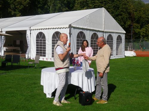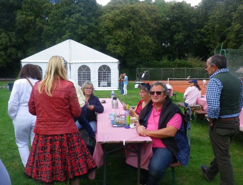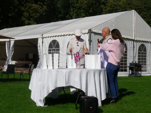 En fin d’après midi, avant le « tea time », remise des prix. Les tenniswomen et tennismen sont récompensés puis c’est au tour des automobilistes: Le Président de l’AVAVA, Paul Libis (Jaguar C Type) et notre ami Gérard dont la 4CV a charmé le jury bien qu’elle ne soit pas anglaise !!!